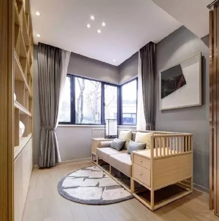 用臥室隔了一間房出來作為私人領(lǐng)地,也可當做書房,一張迷你的木質(zhì)沙發(fā)床溫暖質(zhì)樸,圓潤的地毯簡單隨性,可以讓你在閑暇的周末無盡的遐想,或是慵懶的小憩,或是靜心的閱讀。