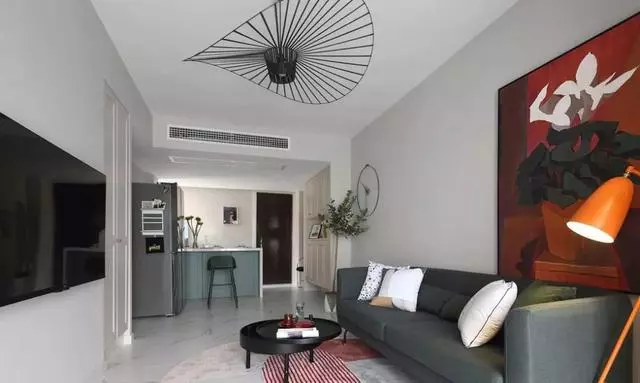 客廳里沒有明確去追求風格化的電視背景墻或沙發(fā)背景墻,反而用油畫這種可替換的軟裝飾品來代替,又實用又好看。