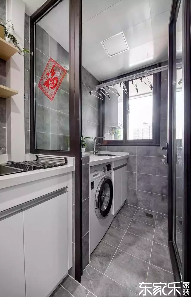 廚房帶著的陽臺做成了生活陽臺,用來曬衣服和洗衣服。