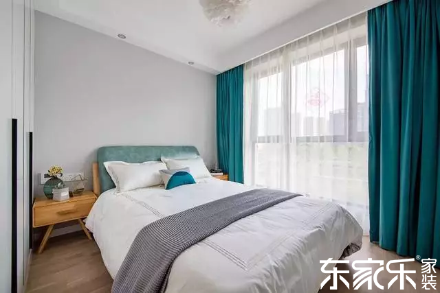 主臥沒有做花哨的裝飾,僅僅用顏色進行裝飾,給人慵懶而又歲月靜好的感覺。