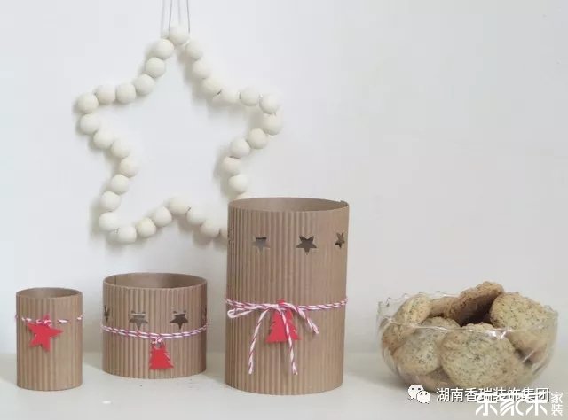 用瓦楞紙快速包裝,用裝飾打孔器打幾個孔,你可以把簡單的奉獻蠟燭(或者在回收的罐子里的蠟燭)變成節(jié)日燈光,用于下一個節(jié)日派對。