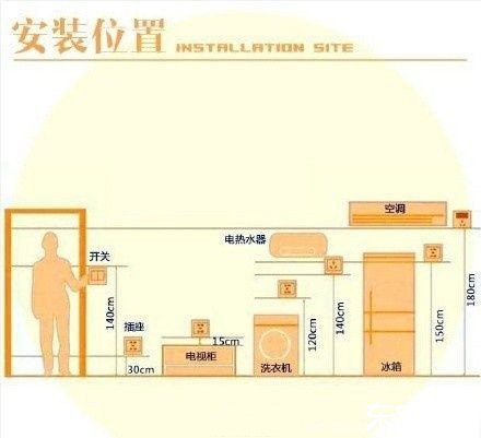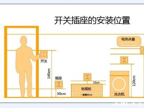 1.電控開關(guān):電源開關(guān)離地面最好在120~135厘米之間(總開關(guān)的高度和成年肩高);