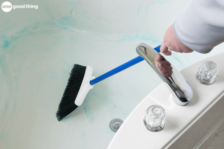 *注意:如果您要定期使用此提示,我會(huì)專門為此目的準(zhǔn)備一把掃帚。一把骯臟的掃帚不能幫助你清理浴缸,所以從美元商店搶到一個(gè)便宜的新的!