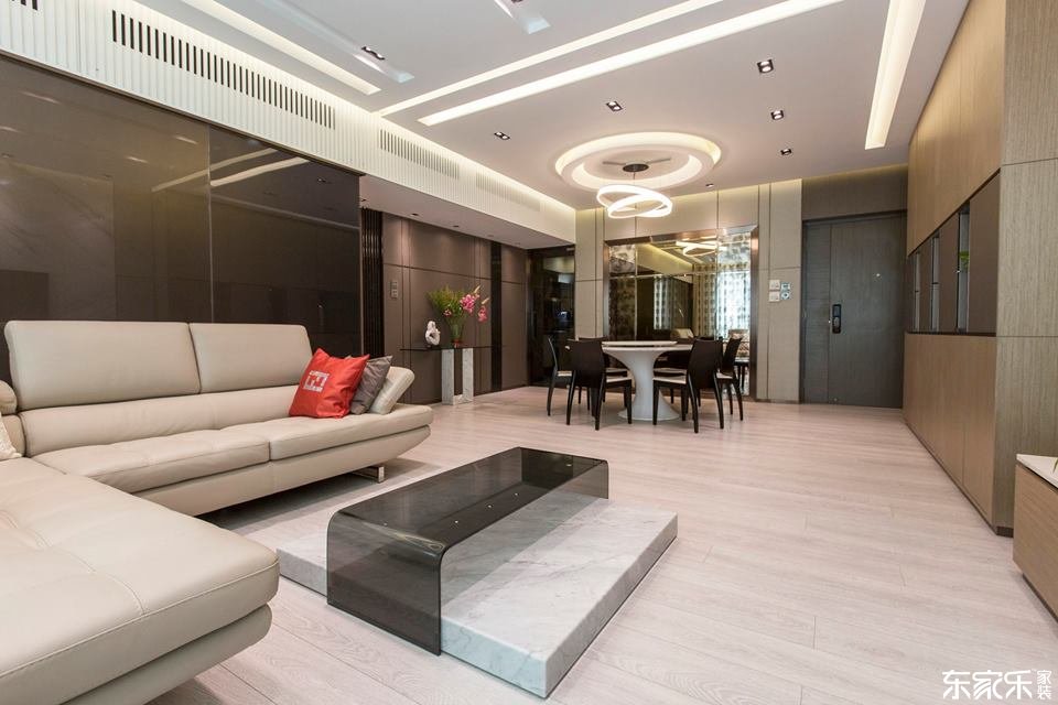 若沒有管線的顧慮,不做假天花,僅以簡單的吊燈、路軌燈補(bǔ)充空間光源,不失為一個(gè)節(jié)省預(yù)算的選擇,不僅日后維修方便,也多空樓底高度,給人更舒適的生活空間。